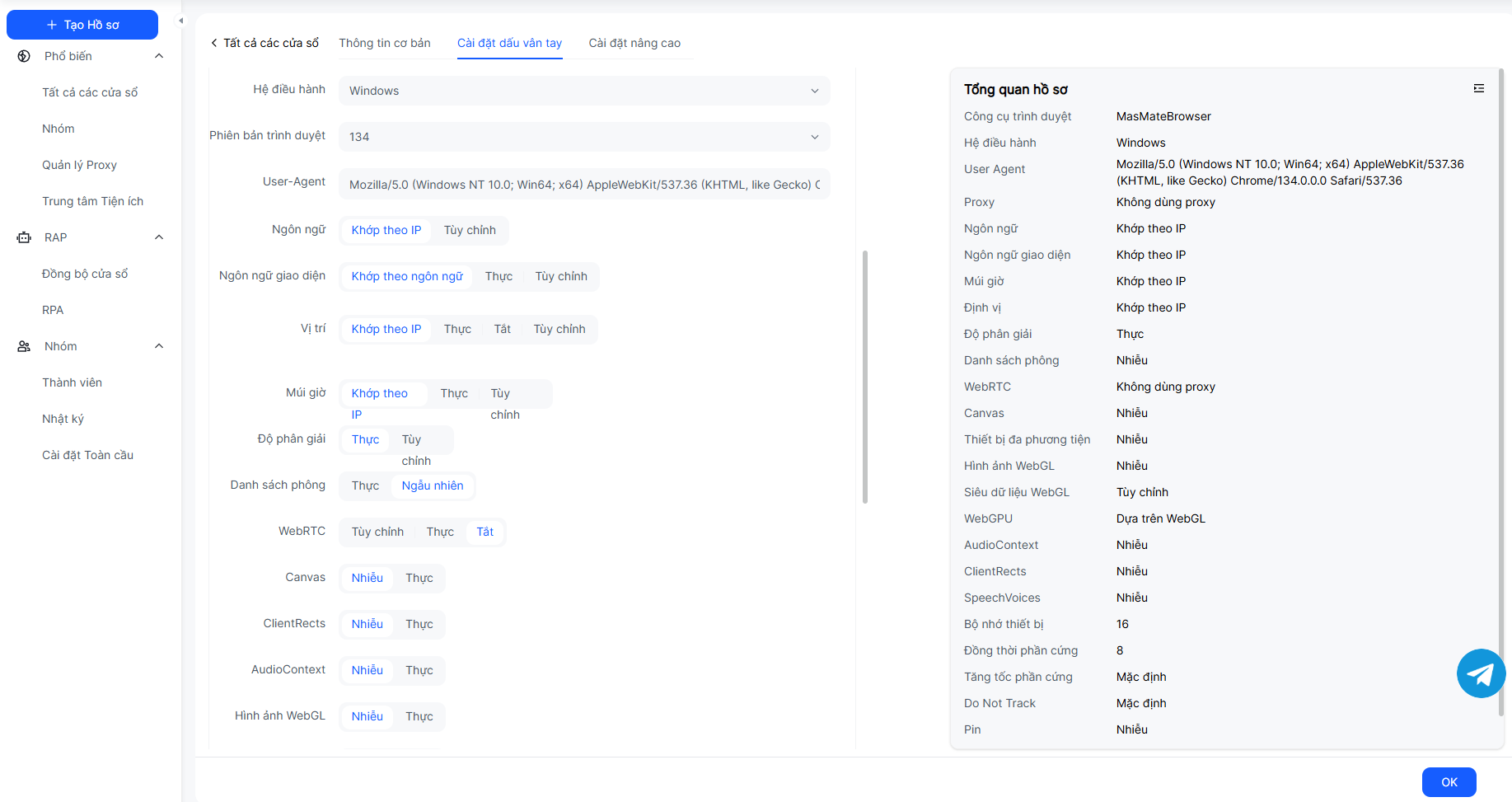 A5: Có. MasLogin tạo môi trường trình duyệt độc lập, mỗi tài khoản có dấu vân tay và IP riêng, giúp ngăn chặn liên kết và nhận diện người dùng.