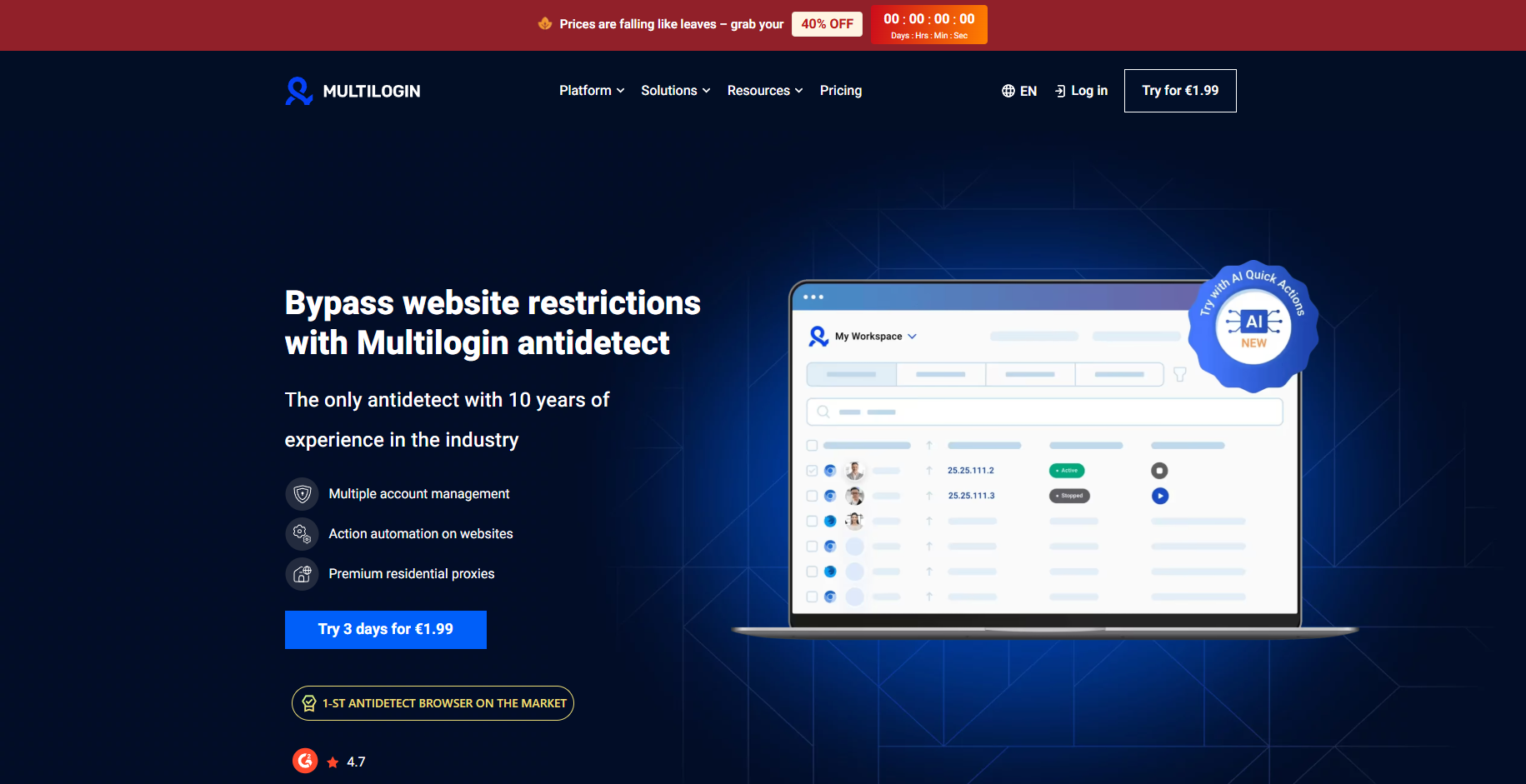 Multilogin 是最早的反检测浏览器之一,市场知名度高,但缺点也明显: