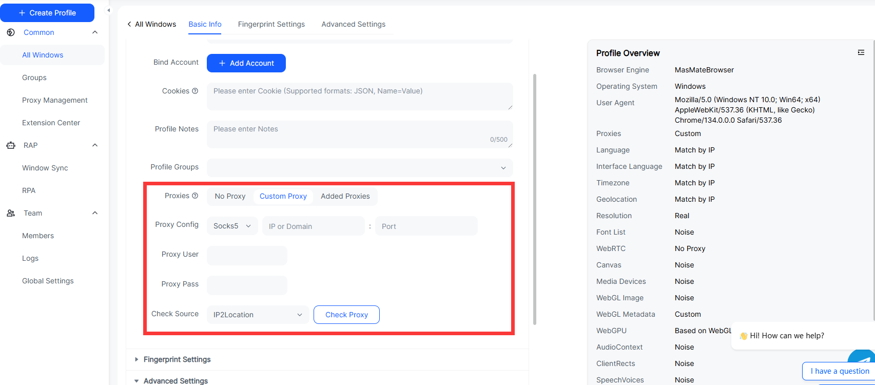 与传统内置VPN不同,MasLogin指纹浏览器提供的内置IP代理功能不仅可以隐藏IP,还能实现多账号操作的安全隔离。核心优势如下: