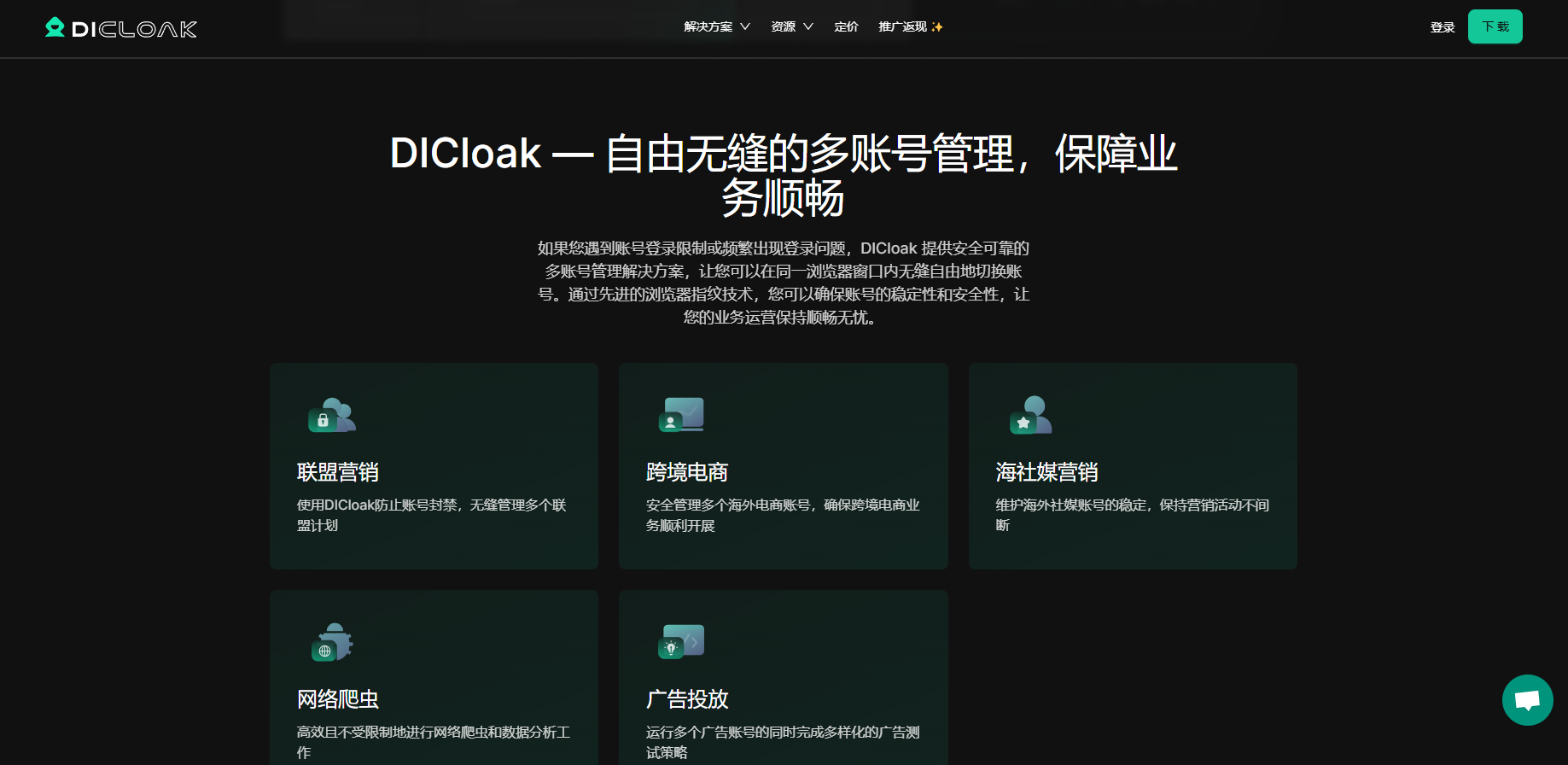 简而言之,DICloak 是一款专业的 防关联浏览器解决方案。无论你是社交媒体运营人员、电商卖家还是广告投手,DICloak 都能帮助你在保证安全的前提下,高效管理和运营多个账号。