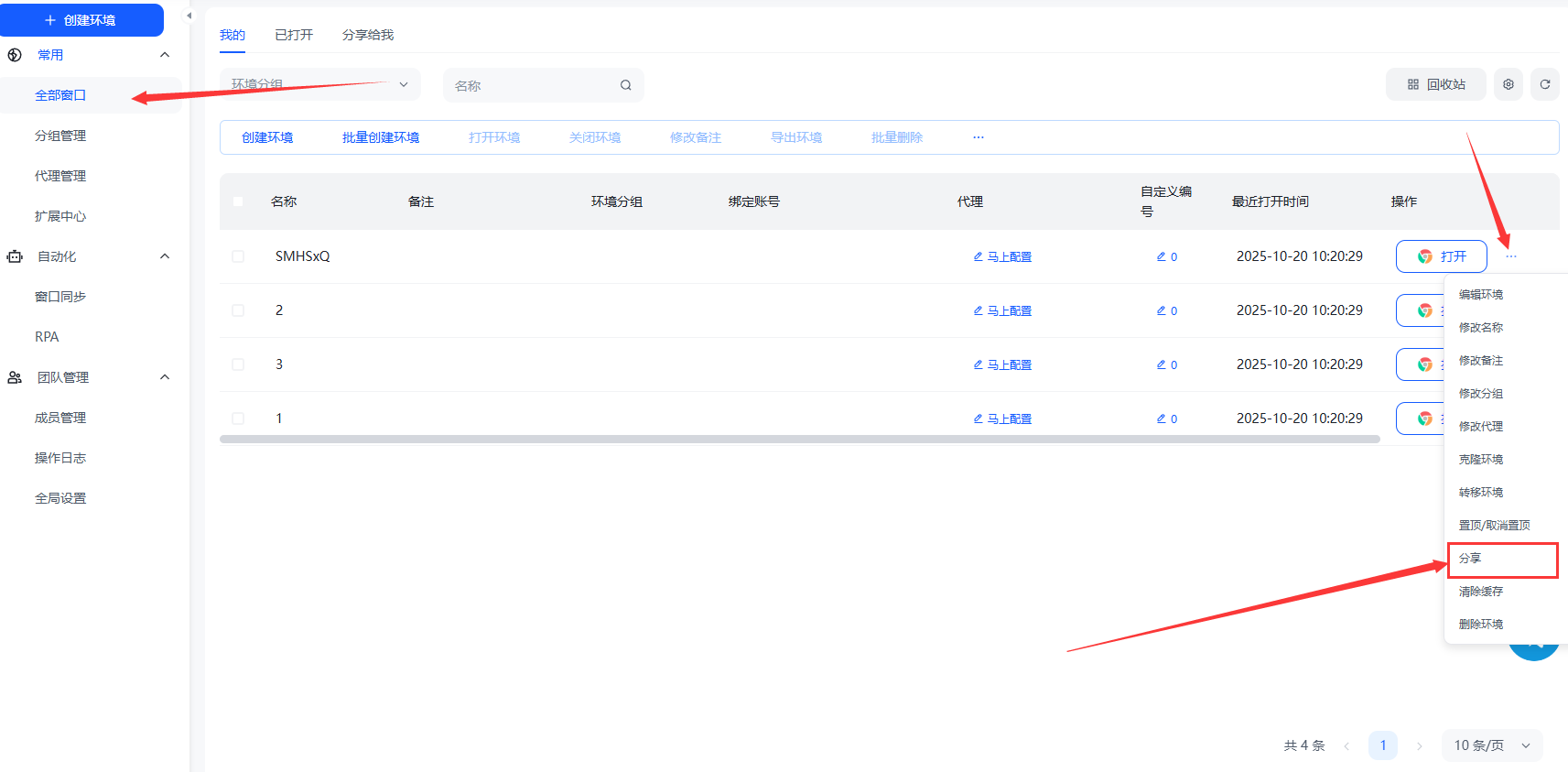 点击环境右侧的 “分享” 按钮 → 输入团队成员邮箱或分享链接,即可让同事在其 MasLogin 客户端中直接登录该环境。