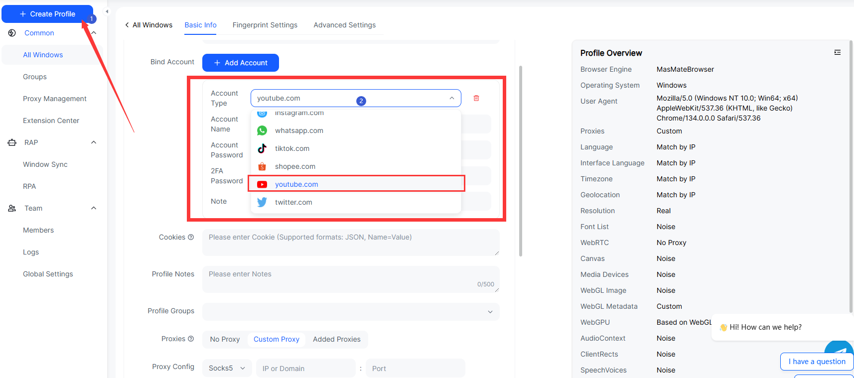 2.创建新的浏览器环境(每个环境对应一个 YouTube 账号);
