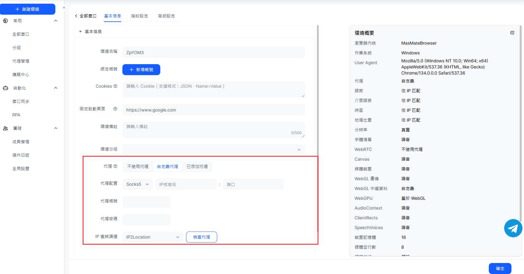 每個環境代表一個店舖,包含獨立 Cookie、指紋與地理 IP。