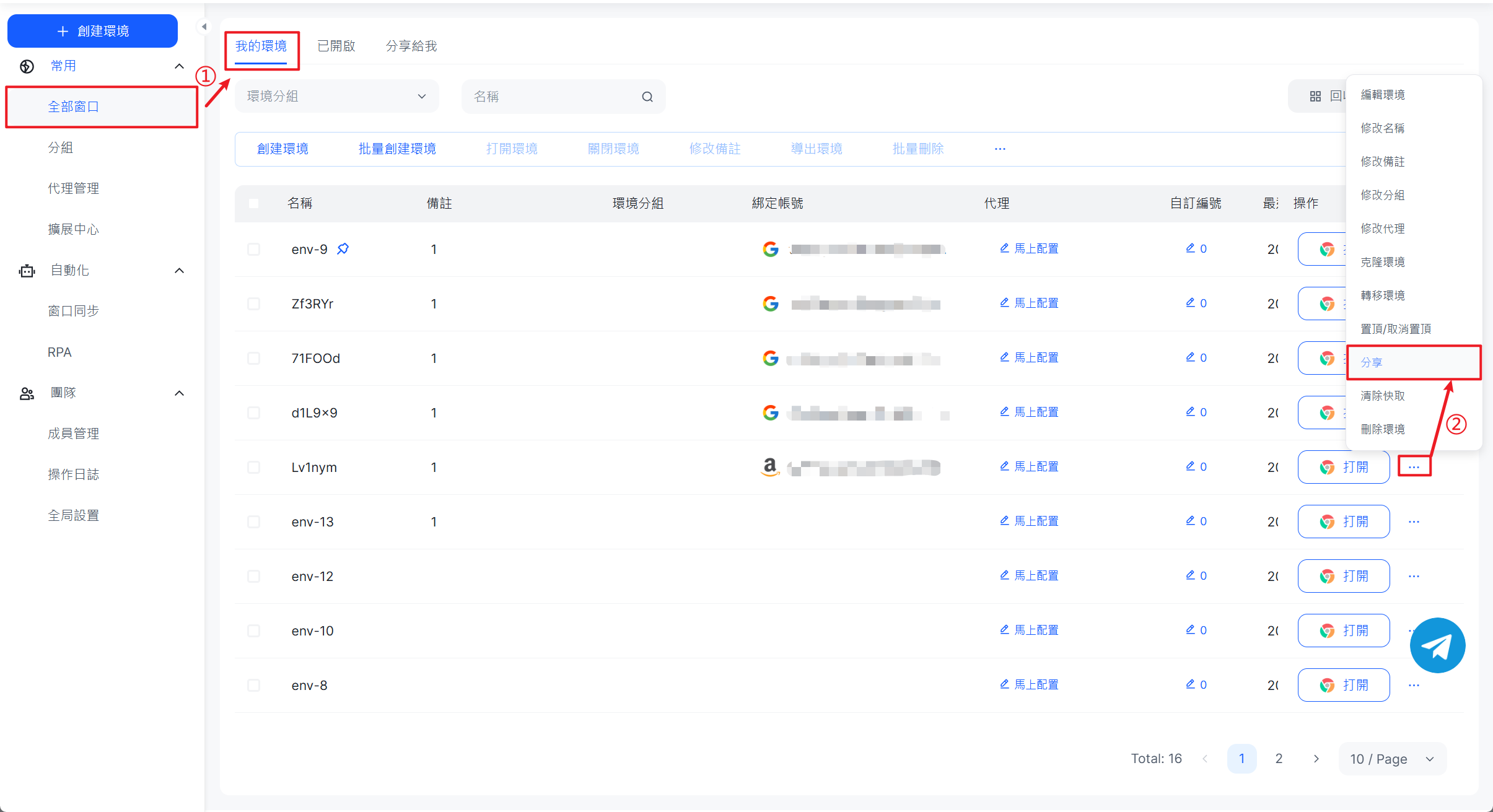 - 在 MasLogin 的【全部視窗】點擊建立環境,命名如
