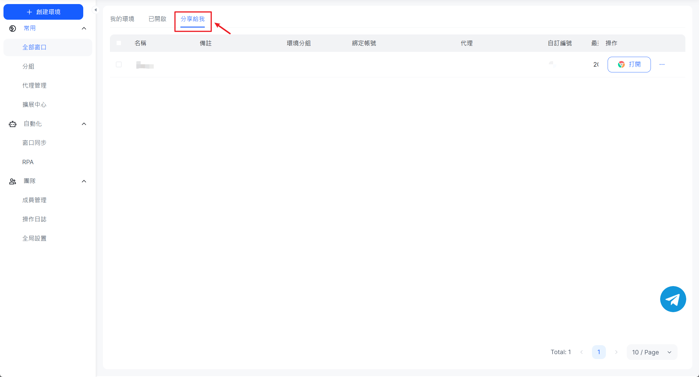 - 確認後發送;對方在【分享給我】即可看到並開啟該環境;同時在【我的】處也可使用分享的環境。