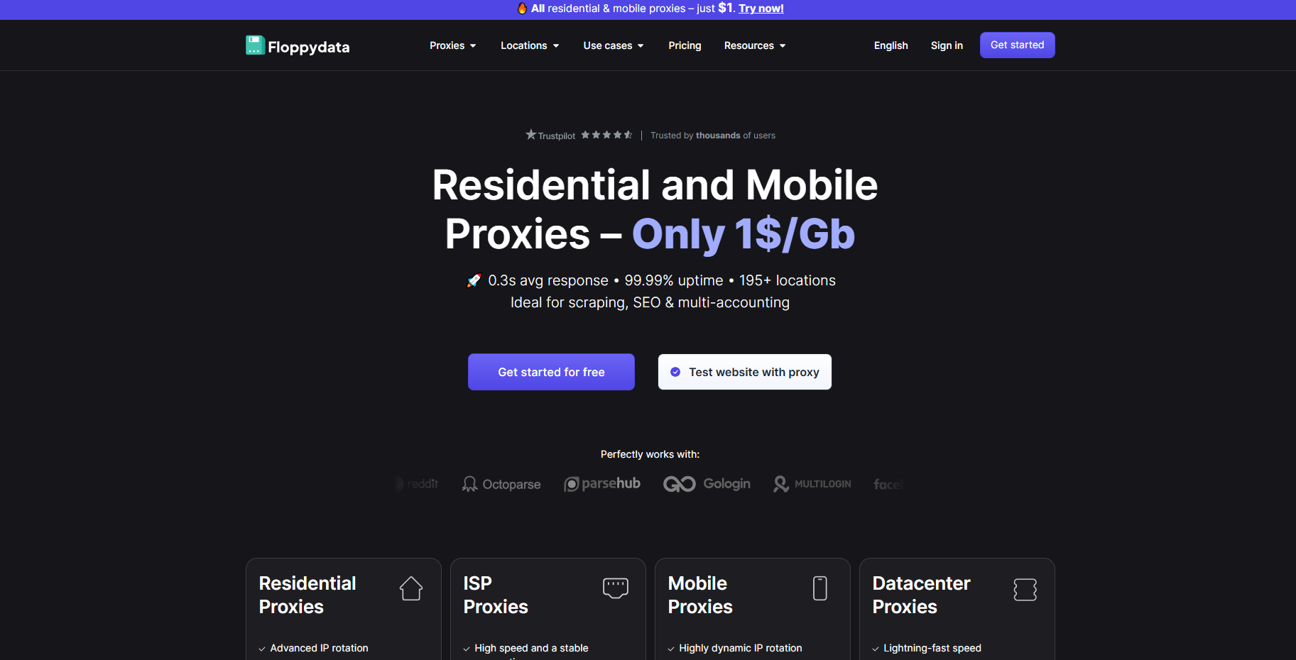 推薦使用具備全球節點的住宅或行動代理(如 Floppy Data), 確保低延遲(<300ms)與高穩定性(99.99% uptime)。